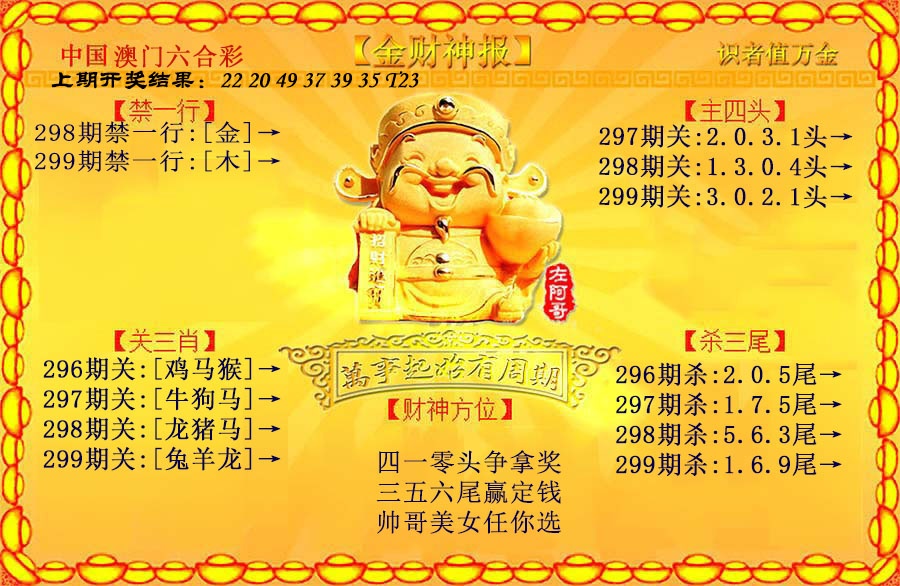 299期:澳门六合彩彩圖信封【金财神报】每期自动更新