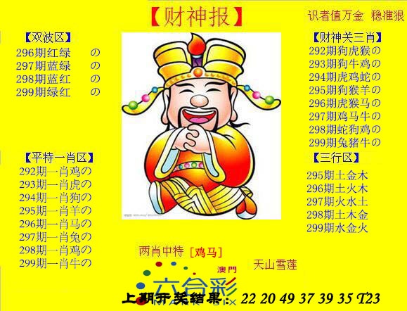 299期:澳门六合彩彩圖信封【黄财神报】每期自动更新